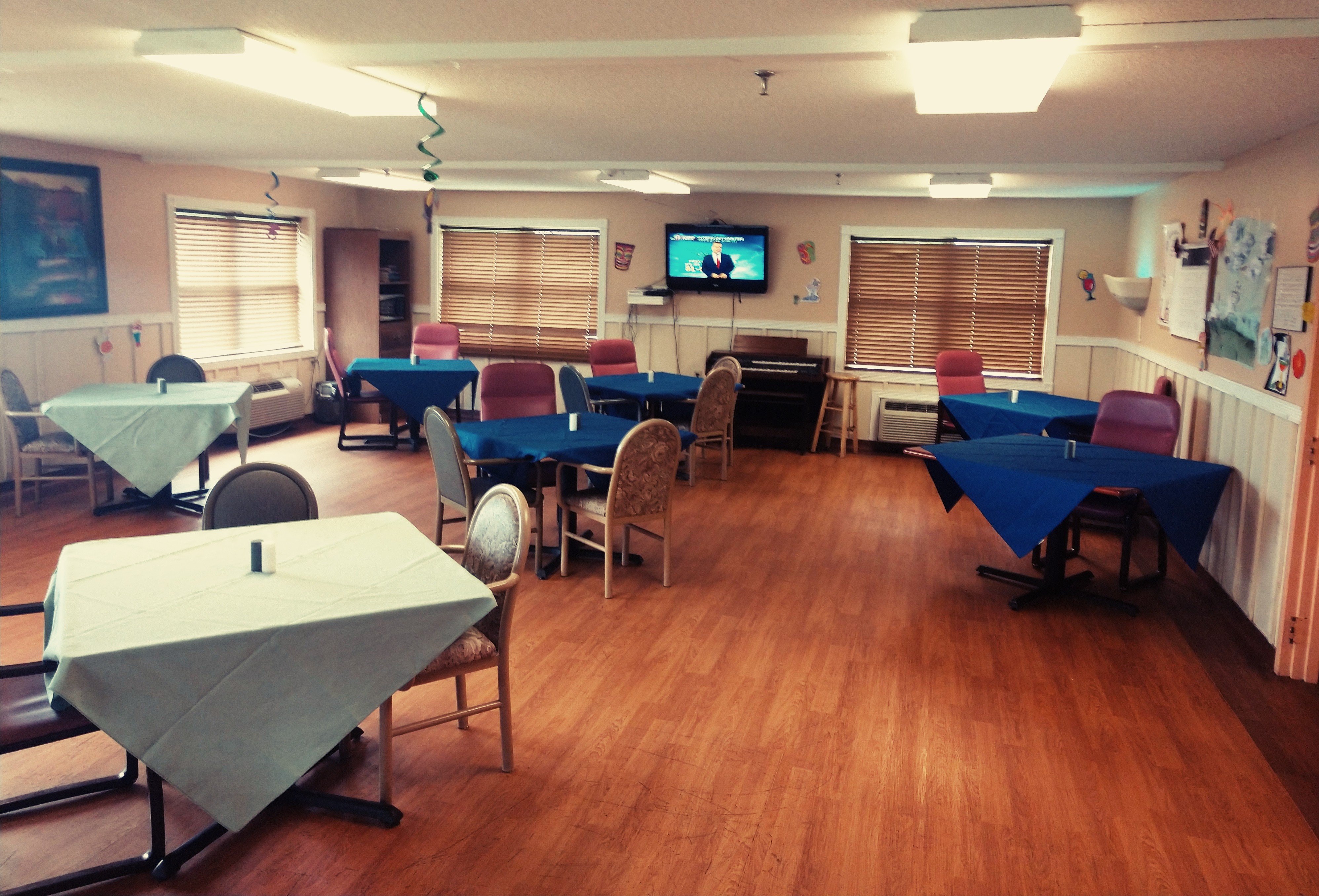 Meals are served in the dining room, food ordered from a menu. If you cannot find something you like on the menu, our cooks will listen to your preferences, and find something you can enjoy.
