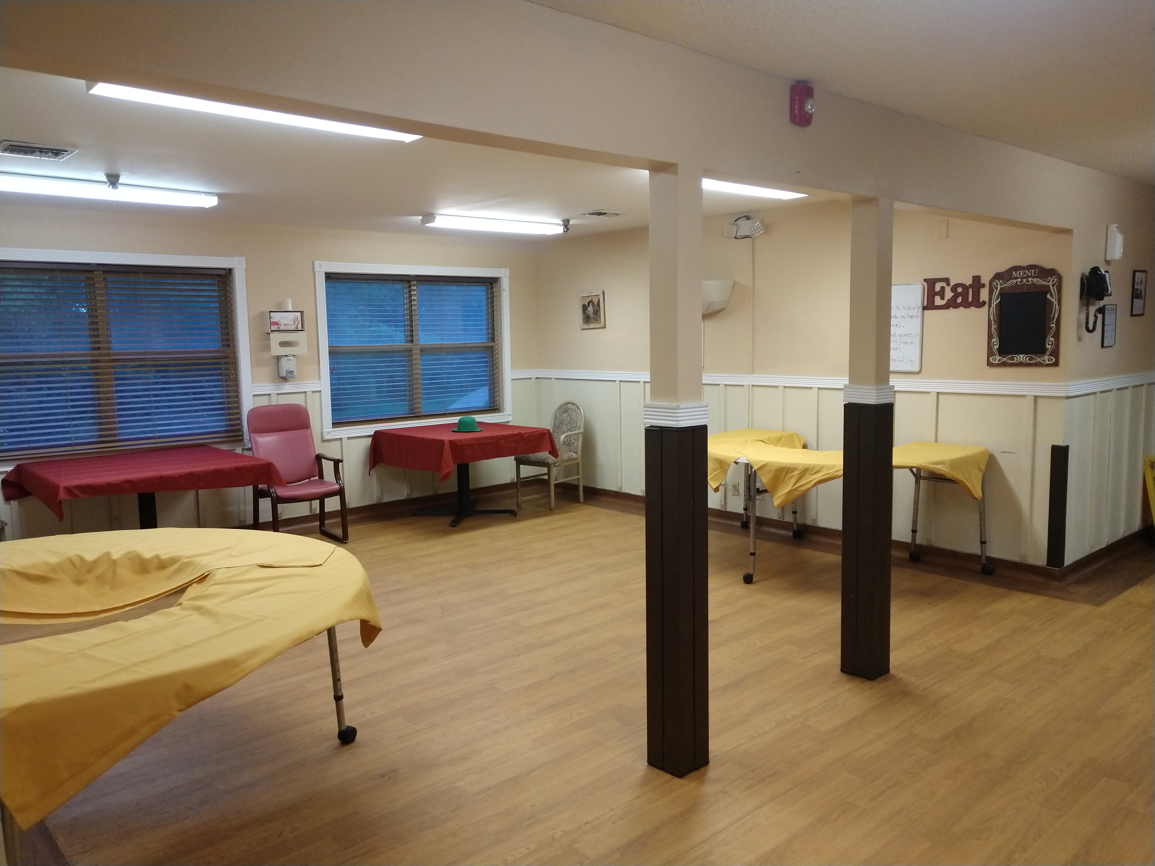Meals are served in the dining room, food ordered from a menu. If you cannot find something you like on the menu, our cooks will listen to your preferences, and find something you can enjoy.